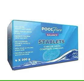• Used for stabilizing chlorine in swimming pools in an easy to use tablet form. Protects and stabilizes chlorine from the ultra-violet rays of the sun. Effectively extending disinfection time. Can also be used with salt water pools.